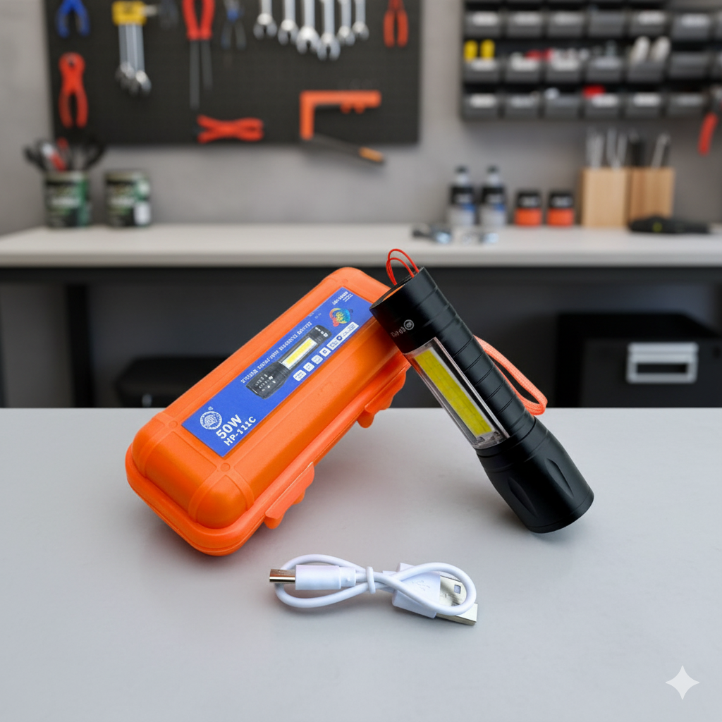 The DesiDiya LED Flashlight is equipped with advanced COB (Chip on Board) technology, delivering bright and efficient lighting for every situation. Perfect for camping, hiking, night walks, or emergencies, this flashlight ensures clear visibility when you need it most.
